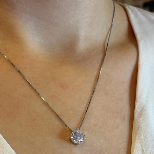 Colar Ponto de Luz 8mm em Prata com Banho de Ródio