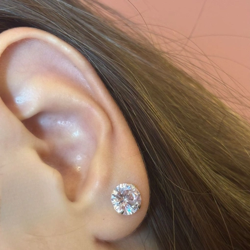 Brinco Ponto de Luz Prata 925 com Zircônia 8mm